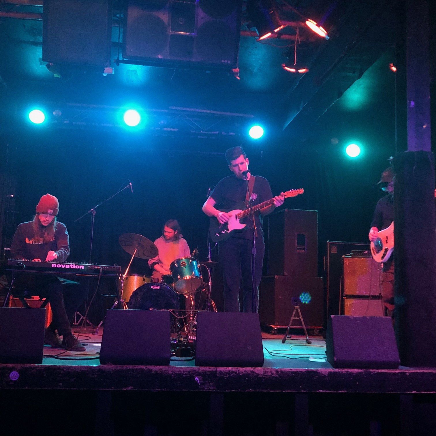Next up was Confusion Illusion playing their very first show. They’re fronted by Bailey Straw, who has guest posted here a couple of times, so I’ve been very excited to see them play. The music was solid, folk-ish indie rock with heavier drums than you would expect. I really enjoyed the imagery in the lyrics, and Bailey’s vocals are really strong. The bassist was playing a 6-string bass that I’ve been informed is a Jaguar 6 Hybrid, which added some je ne sais quoi to the set. They played a song I recognized from a solo set I saw Bailey play a while back, called 34th St., that was so catchy it’s been stuck in my head for over a year.
